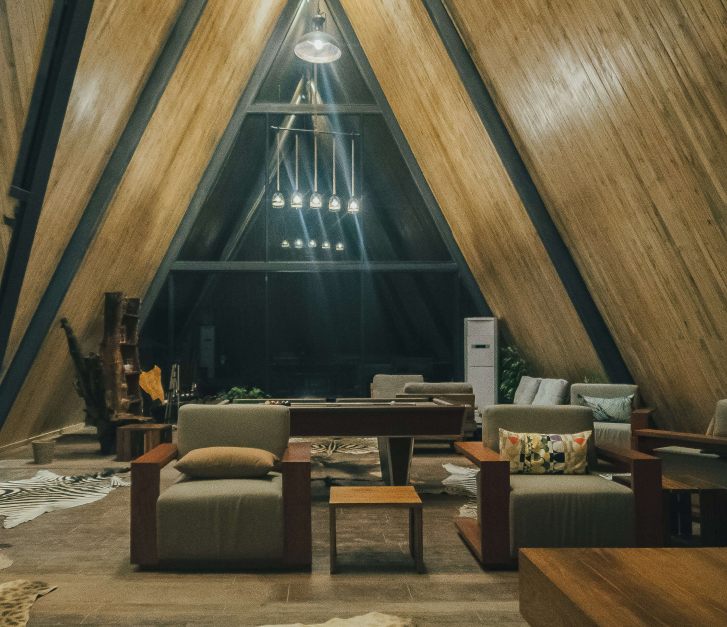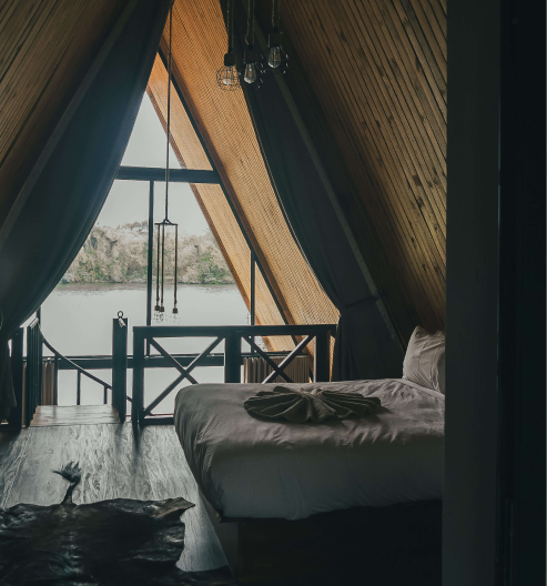 Experience the perfect balance of rustic charm and modern comfort in our unique chalets. With exposed wooden interiors and panoramic views of the river and gardens, our chalets allow you to feel one with nature. Whether you're staying in our A-frame riverfront chalets or nestled within the garden-view accommodations, every detail is designed to offer tranquility and elegance.